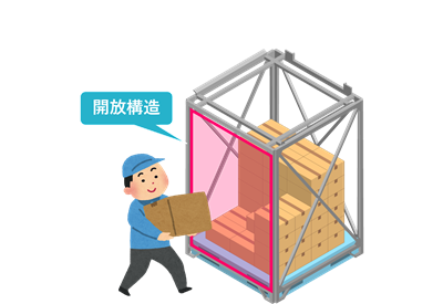 1面開放仕様のため、段積みしたままでも下段の荷の出し入れが可能です。